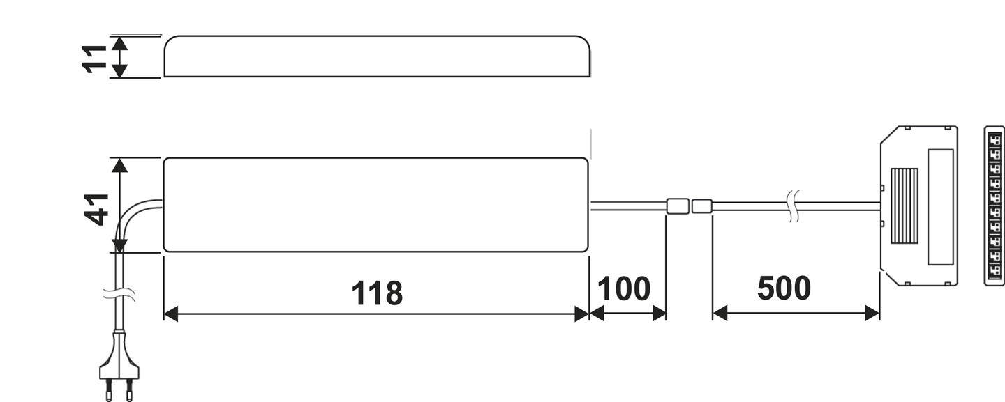Pour éviter les chutes de tension, la section et la longueur de câble sont primordiales. Il en résulte que la distance séparant le transformateur de la lampe doit être inférieure à 2 m. Cela implique aussi que le câble d’alimentation du transformateur doit toujours être à plus de 0,1 m de tout câblage. Tout câble doit toujours avoir une section supérieure à 0,75 mm².