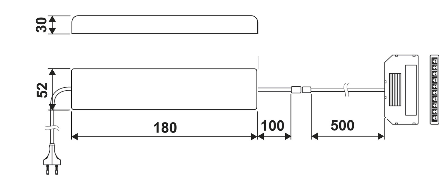 Pour éviter les chutes de tension, la section et la longueur de câble sont primordiales. Il en résulte que la distance séparant le transformateur de la lampe doit être inférieure à 2 m. Cela implique aussi que le câble d’alimentation du transformateur doit toujours être à plus de 0,1 m de tout câblage. Tout câble doit toujours avoir une section supérieure à 0,75 mm².
