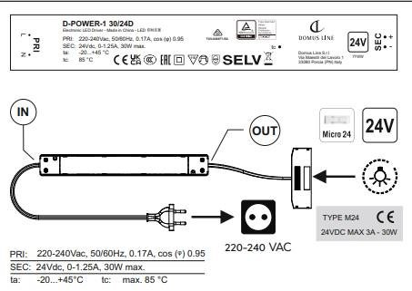 Pour éviter les chutes de tension, la section et la longueur de câble sont primordiales. Il en résulte que la distance séparant le transformateur de la lampe doit être inférieure à 2 m. Cela implique aussi que le câble d’alimentation du transformateur doit toujours être à plus de 0,1 m de tout câblage. Tout câble doit toujours avoir une section supérieure à 0,75 mm².