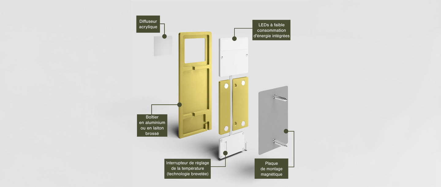 Spot LED dimmable, extra-plat, avec intensité réglable. Possibilité de changer la température d’éclairage à l’aide du bouton au dos, de 3000 à 5000 Kelvin. Système d’installation facile et invisible par plaque aimantée. Pour connaître les compatibilités avec nos convertisseurs, merci de vous référer au document en bas de cette page.