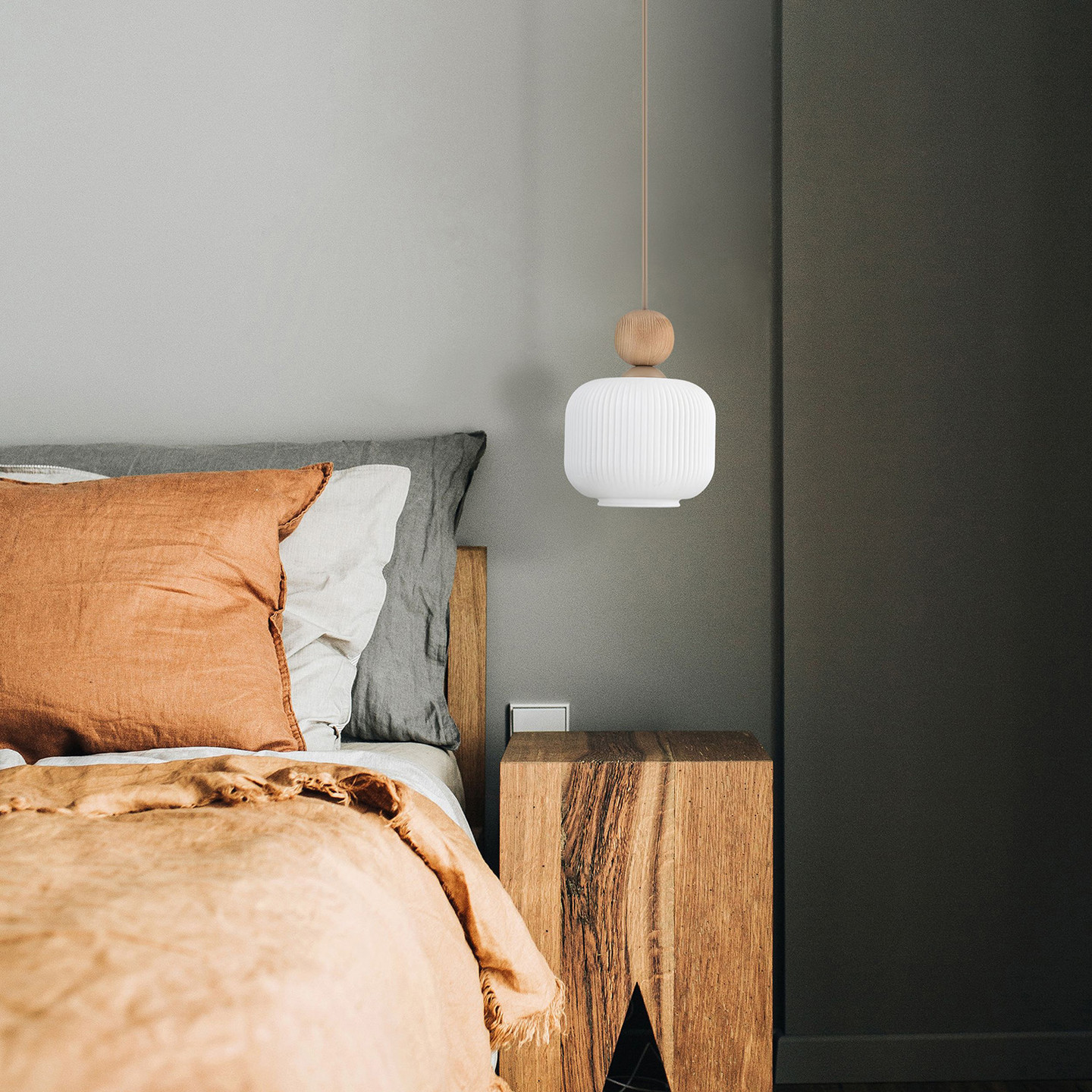 Un modèle au design épuré, sublimé par l’alliance de 2 matières nobles : le bois et le verre. Suspension livrée sans ampoule E14. Lorsque la suspension est allumée, la finition en verre sablé blanc peut laisser apparaître de légères aspérités, propres à ce type de matière. Dimension plafonnier : Ø80 mm.