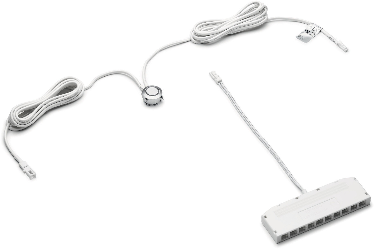 Commande tactile offrant un contrôle complet de l’éclairage : on/off, variation d’intensité et gestion de la température d’éclairage. Possibilité d’éteindre la LED rouge de façon permanente.