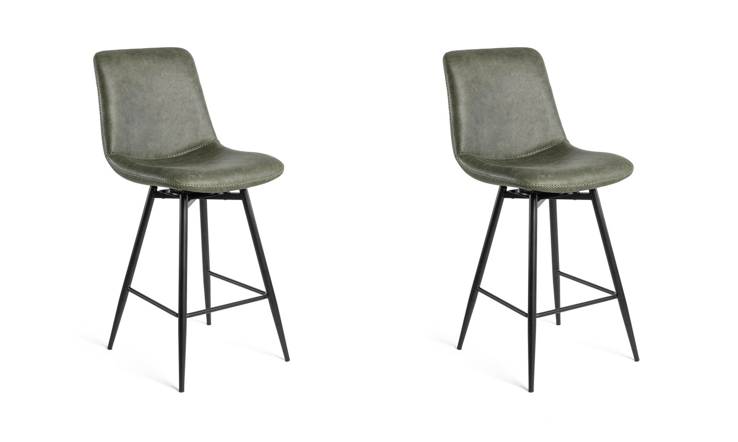 Lots de 2 assises hauteur plan César avec assise tissu kaki et piètement métal anthracite