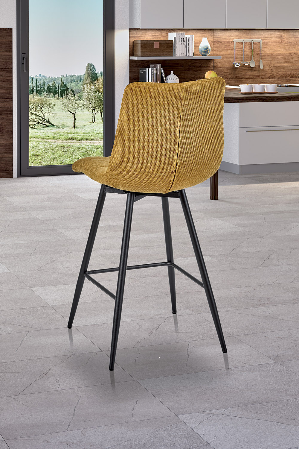 Lot de 2 tabourets classiques hauteur plan de travail. Et pour encore plus de confort, cette version de piètement profite de l'option plateau pivotant à 180° (réf. AM4PP002). Charge maximale de 120 kg.