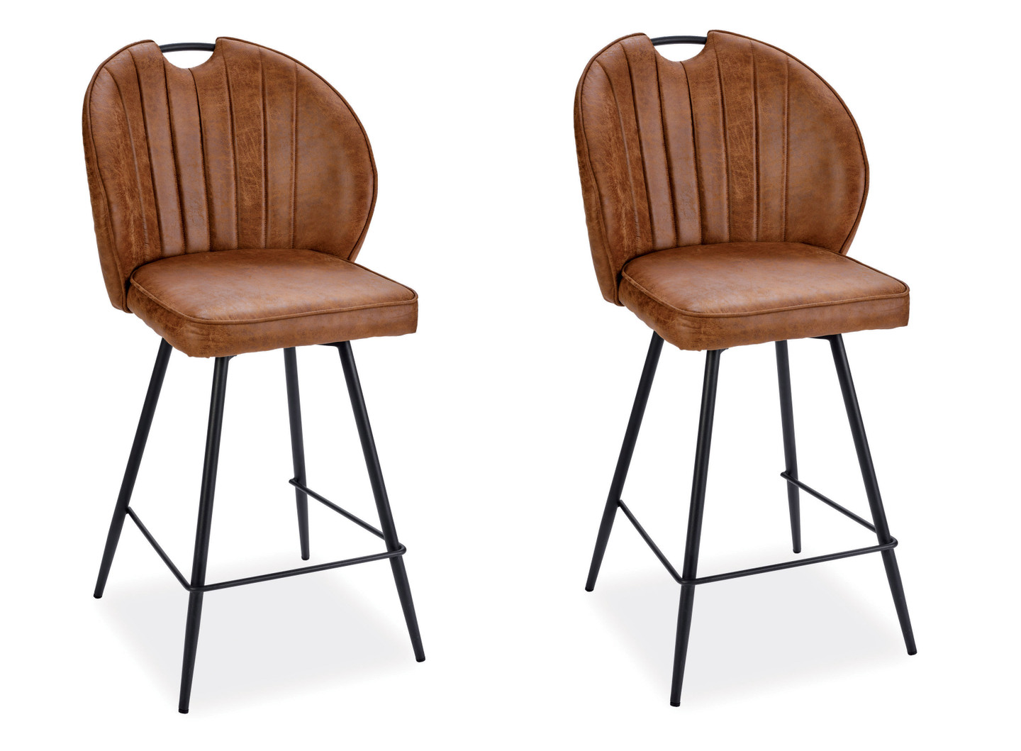 Lot de 2 tabourets esprit vintage, hauteur d'assise 65 cm. Assise fixe. Et pour encore plus de confort, profitez de l'option plateau pivotant à 180° (réf. AM4PP001).