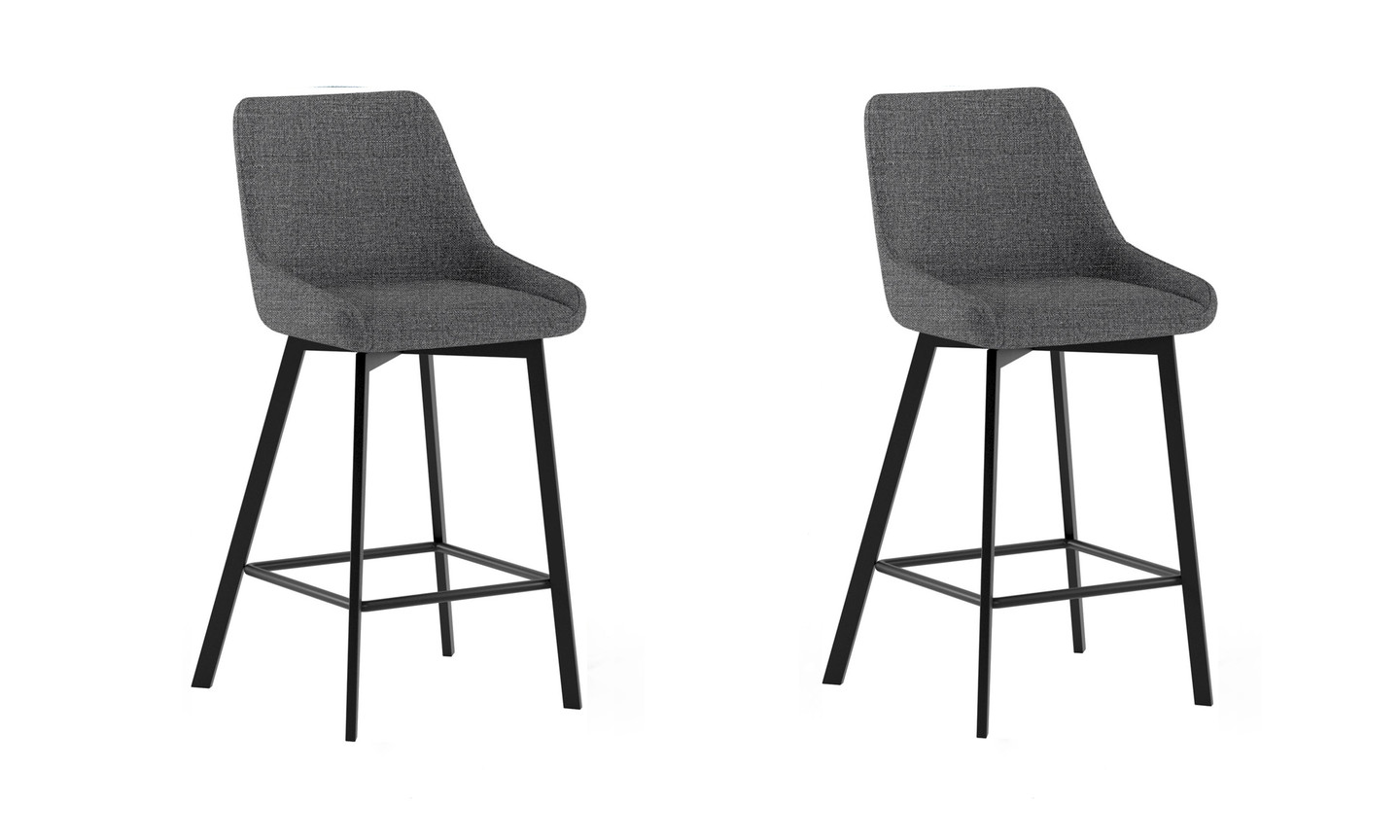 Lots de 2 assises hauteur plan Felix avec assise tissu gris et piètement métal noir