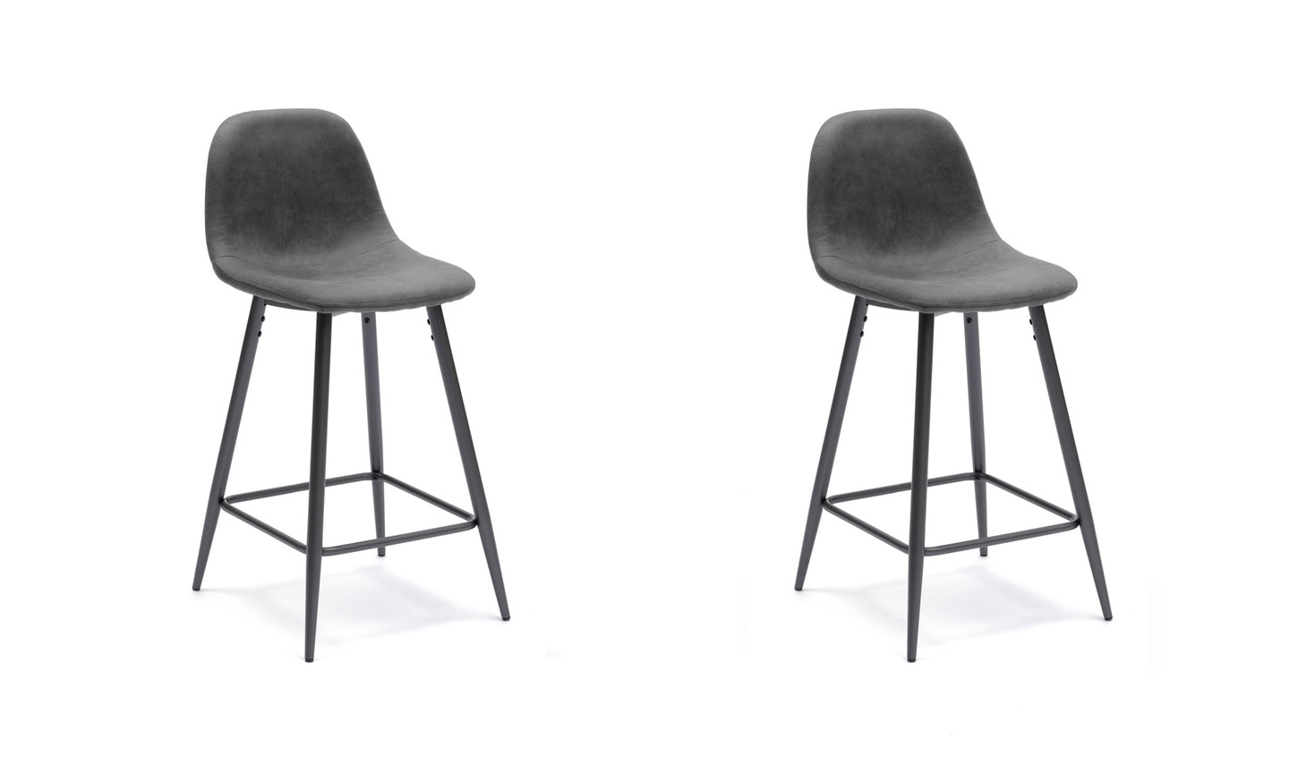 Lots de 2 assises hauteur plan Jules avec assise simili cuir anthracite et piètement métal gris anthracite