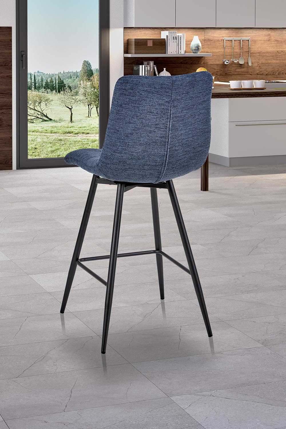 Lots de 2 assises hauteur plan Maelys avec assise et dossier tissu bleu jean et piètement métal anthracite