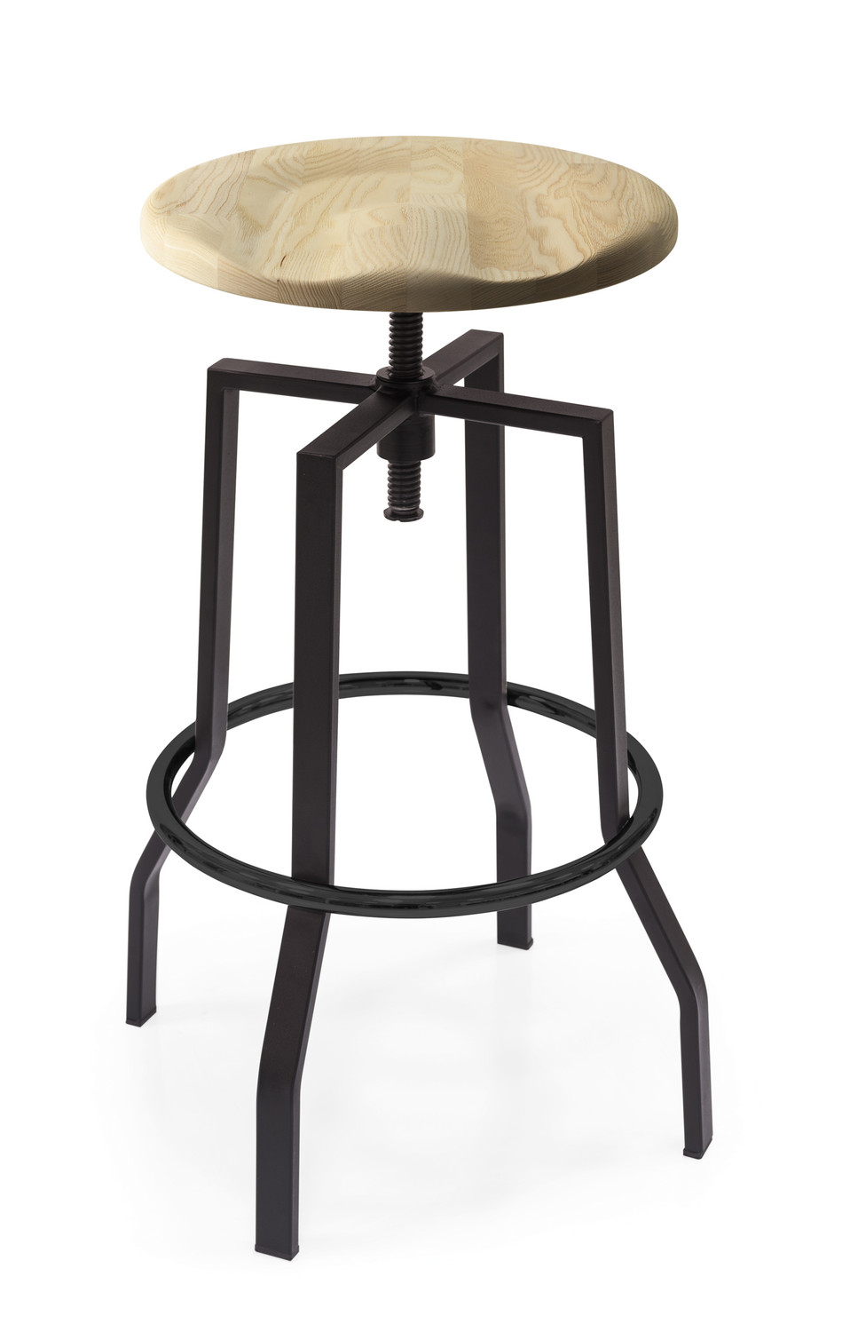 Assise hauteur réglable Gabriel avec assise bois massif en chêne et piètement métal noir