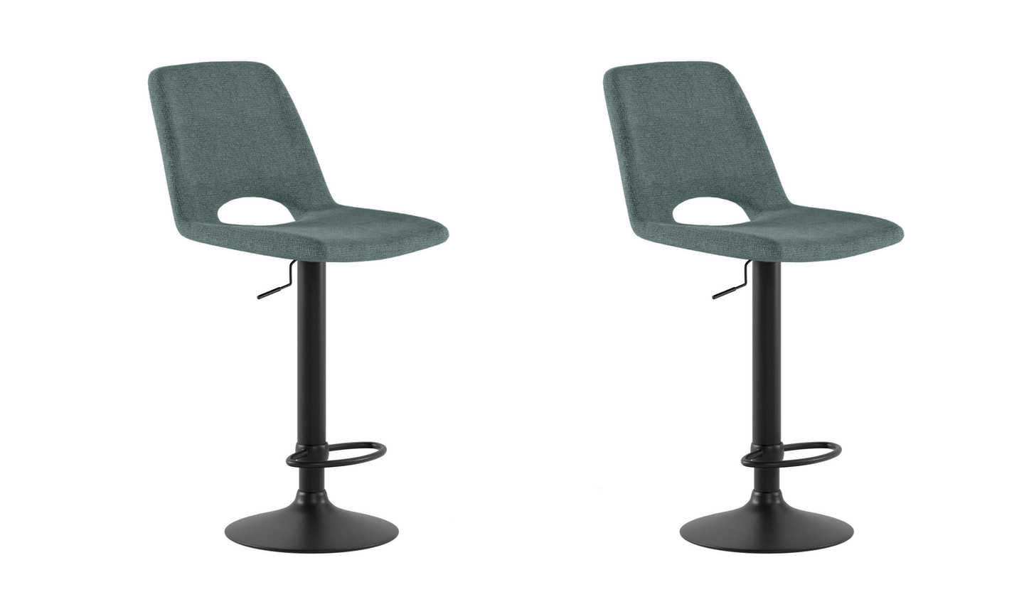 Lots de 2 assises hauteur réglable Milo avec assise tissu turquoise et piètement métal noir