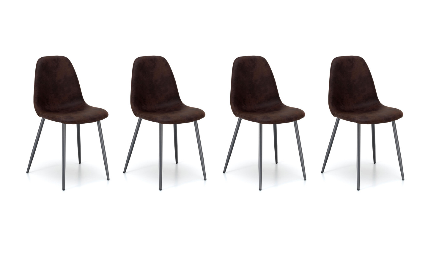Lots de 4 assises hauteur table Jules avec assise simili cuir chocolat et piètement métal gris anthracite