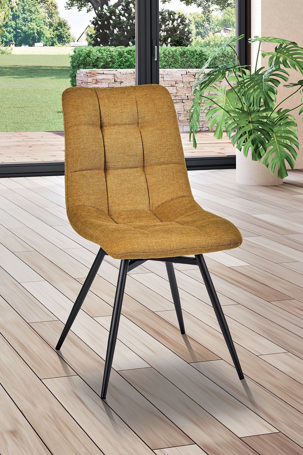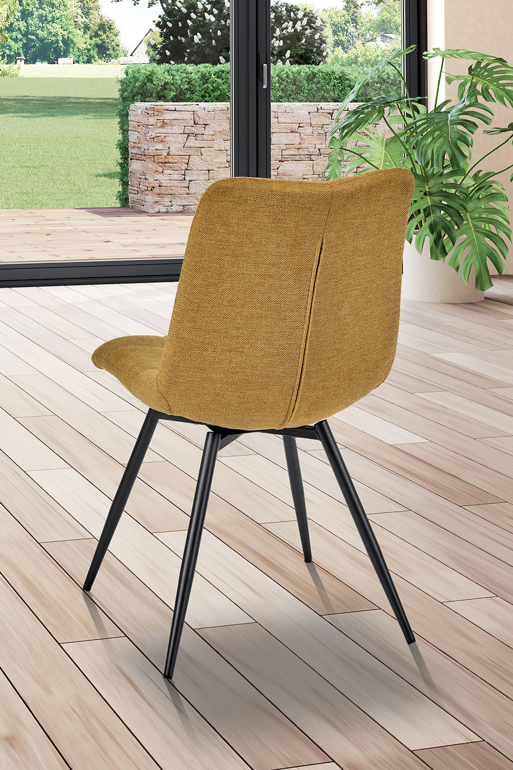 Lot de 2 assises hauteur table Maelys avec assise tissu jaune sable et piètement métal anthracite