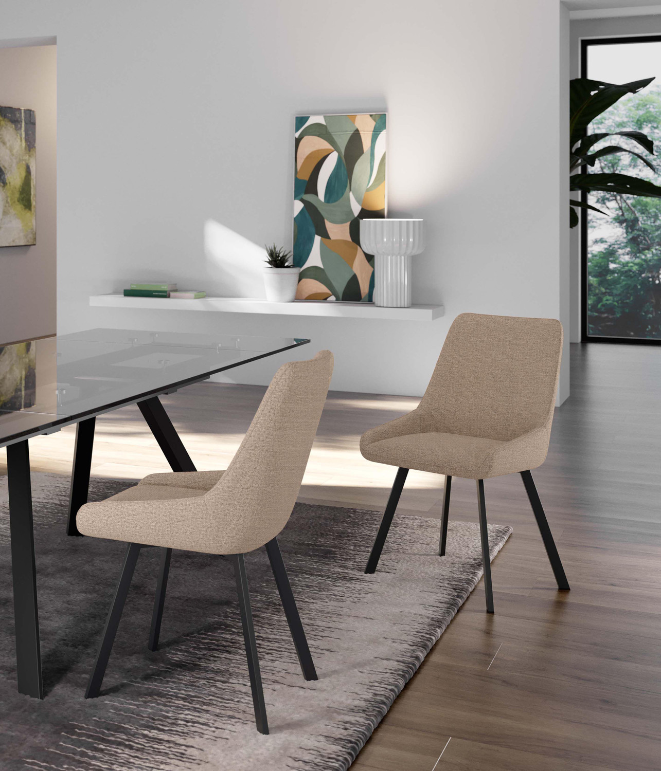 Lots de 4 assises hauteur table Felix avec assise tissu beige et piètement métal noir