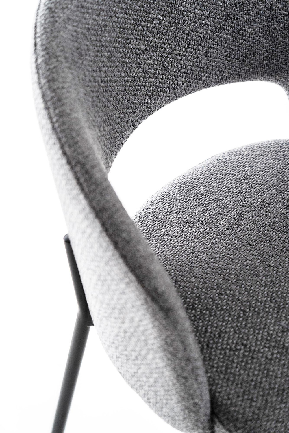 Lots de 2 assises hauteur table Sara avec assise tissu gris clair et piètement métal gris anthracite