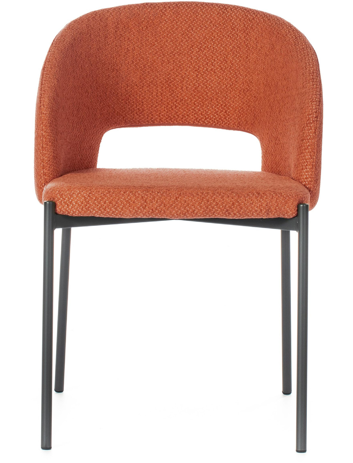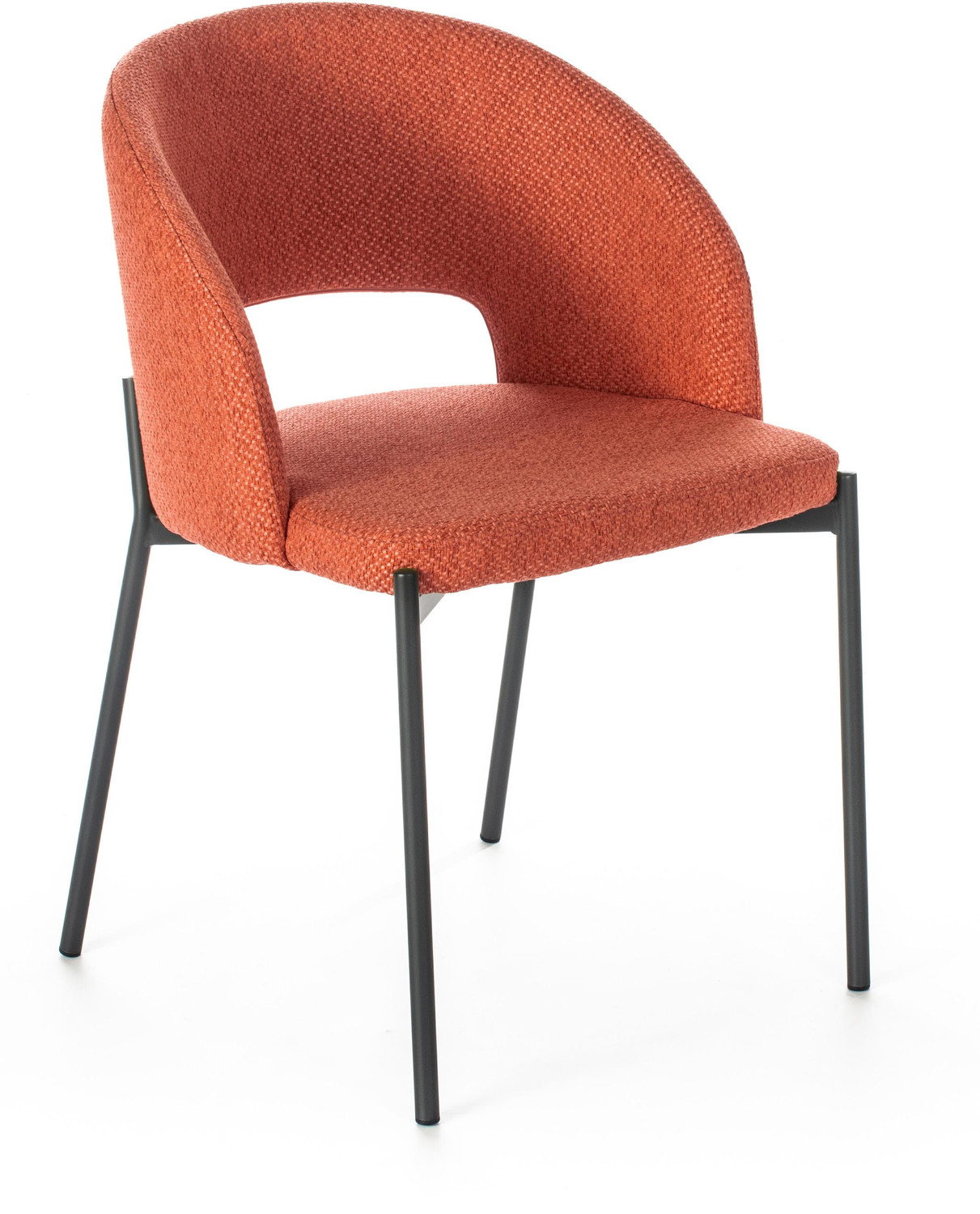 Lots de 2 assises hauteur table Sara avec assise tissu rouge brique et piètement métal gris anthracite