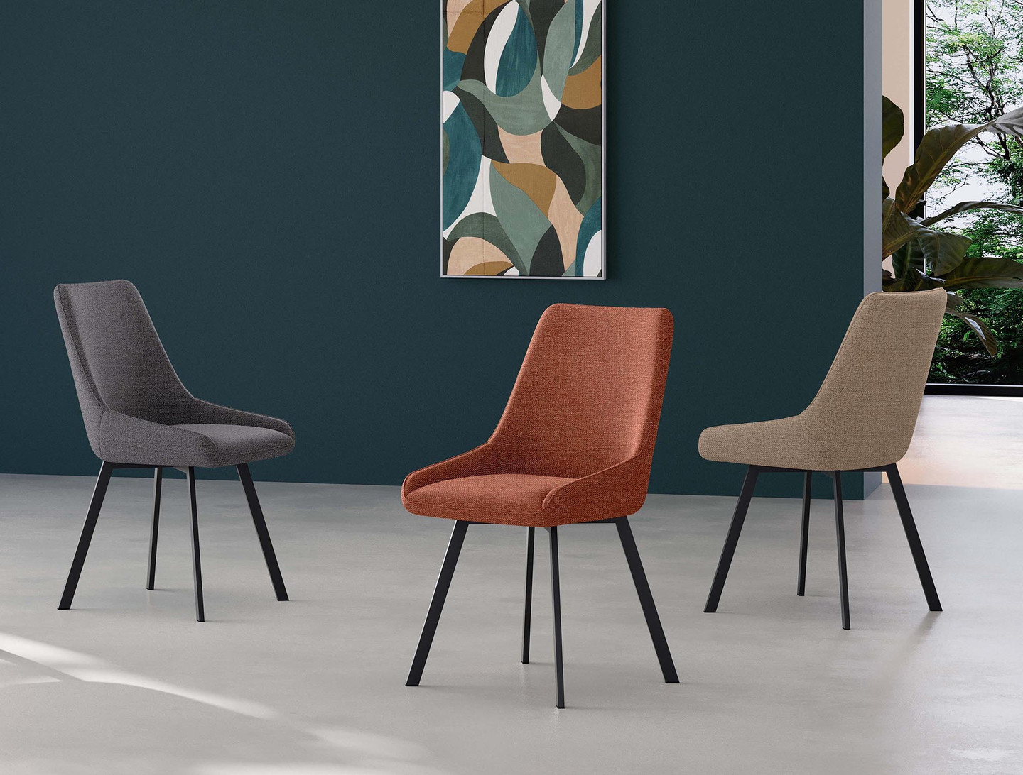 Lots de 4 assises hauteur table Felix avec assise tissu terracotta et piètement métal noir