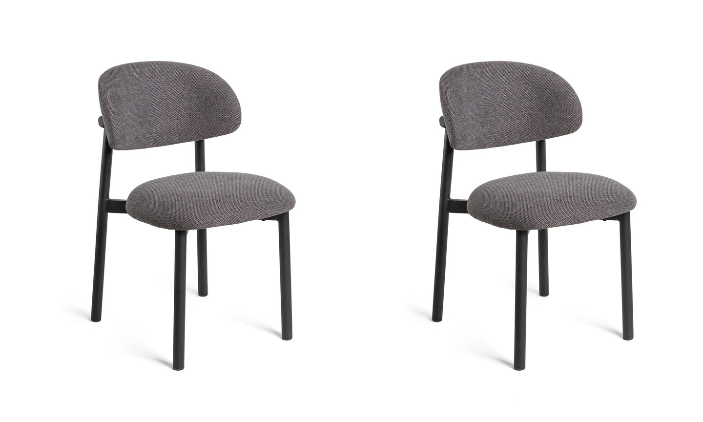 Lots de 2 assises hauteur table Lena avec assise tissu gris et piètement métal anthracite