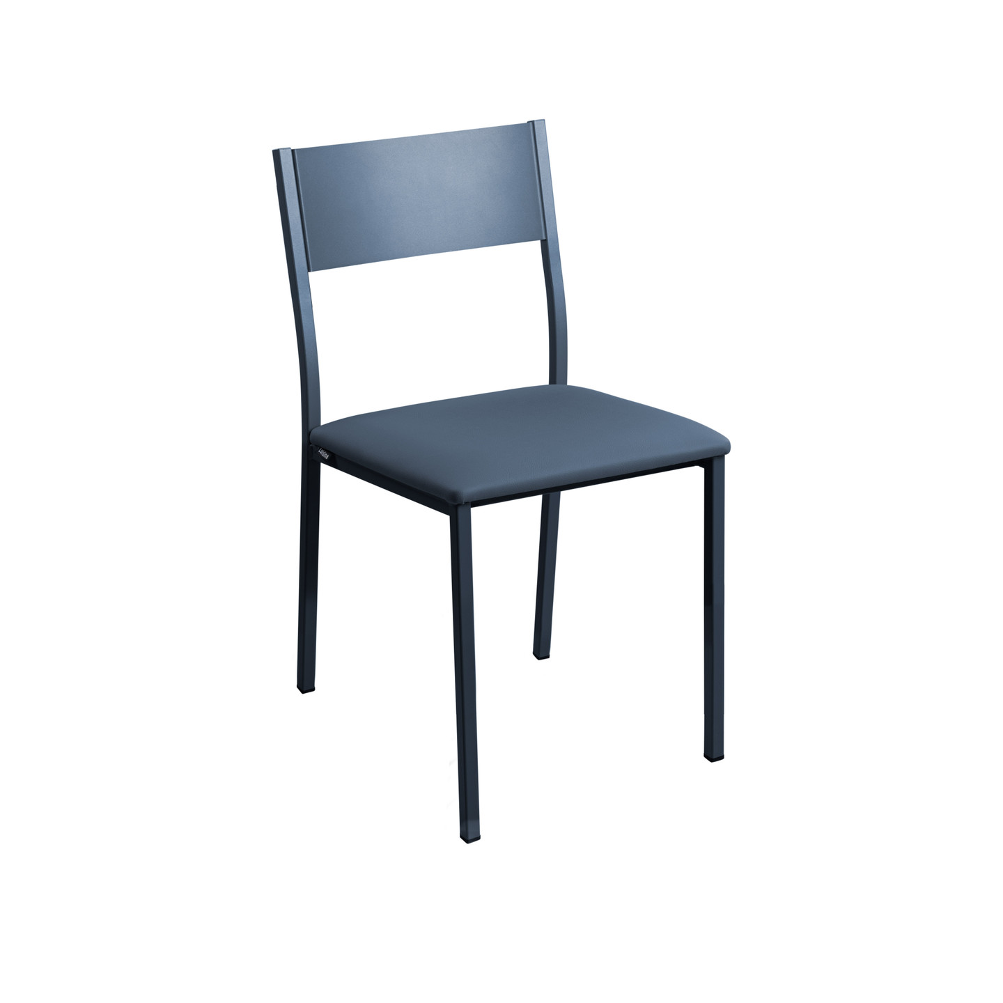 Assise hauteur table Ted avec assise vinyle bleu et piètement métal bleu