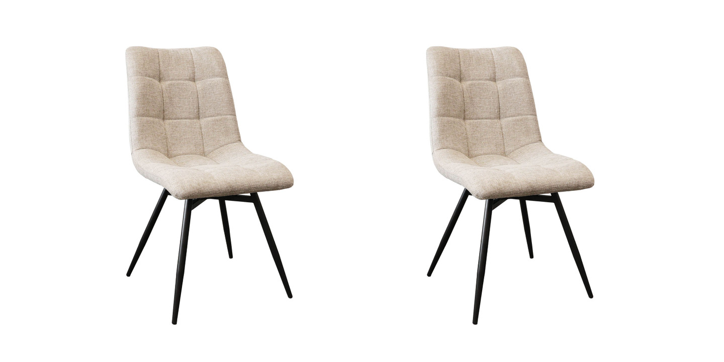 Lot de 2 chaises esprit classique, hauteur d'assise 45 cm. Et pour encore plus de confort, profitez de l'option plateau pivotant à 180° (réf. AM4PP002), disponible uniquement sur les modèles coloris beige, kaki et anthracite.
