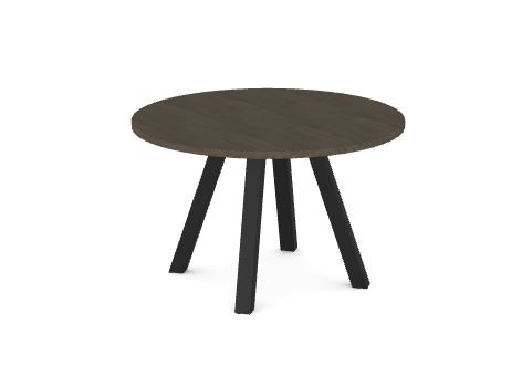 Table Noa stratifié avec plateau rond et structure métal. Le piètement est en acier peint époxy 7 x 7 cm et l'armature en alumium peint époxy.