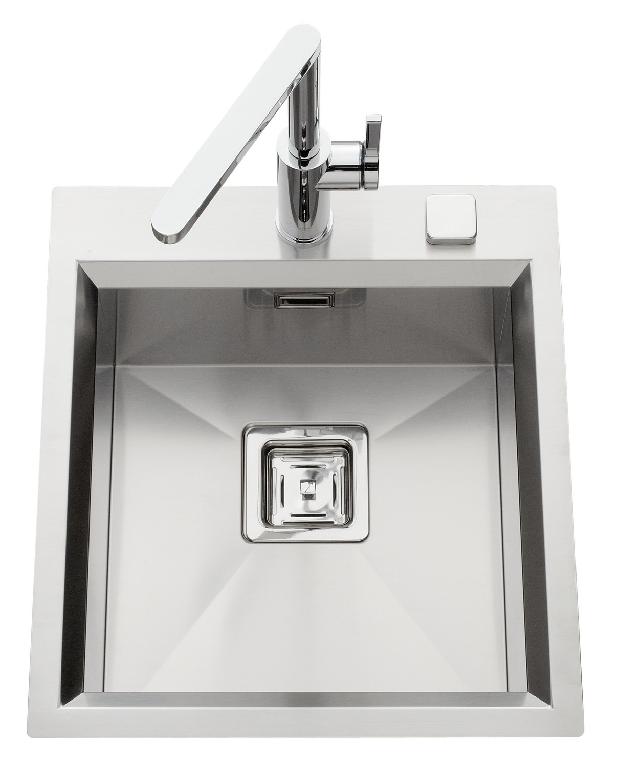 Diamètre de perçage pour la manette de vidage : 35 mm. Cuve à encastrer Luisinox avec vidage automatique carré chromé.