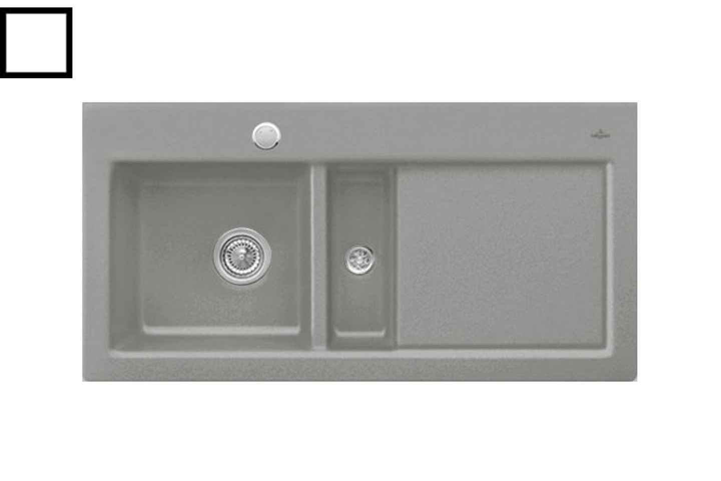 Evier à fleur Villeroy & Boch 1 bac, 1 vide-sauce, 1 égouttoir coloris Stone White