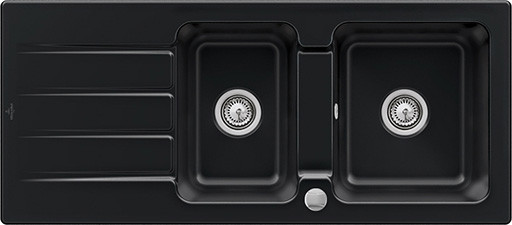 Evier à encastrer Villeroy & Boch 2 bacs, 1 égouttoir coloris Pure Black