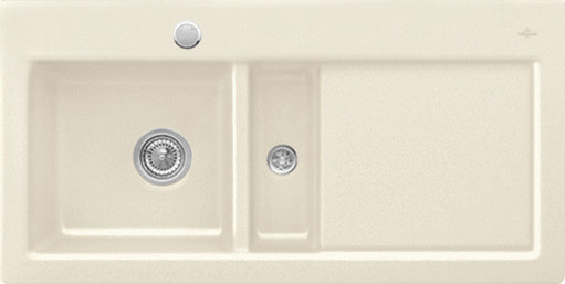 Evier à fleur Villeroy & Boch 1 bac, 1 vide-sauce, 1 égouttoir coloris Crème