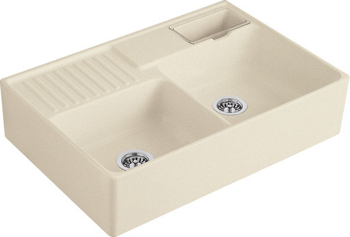 Evier à poser Villeroy & Boch 2 bacs, 1 vide-sauce, 1 égouttoir coloris Ivory