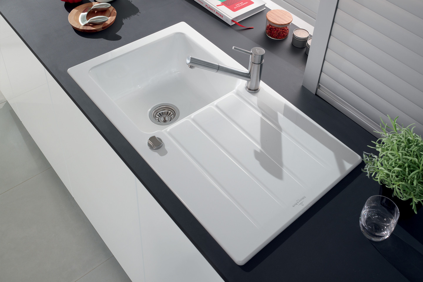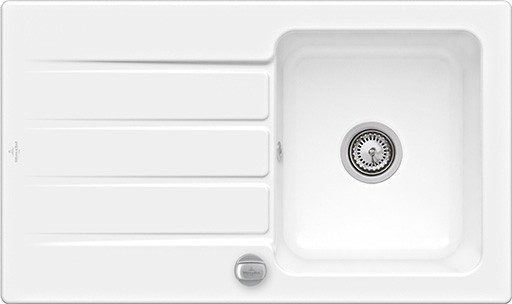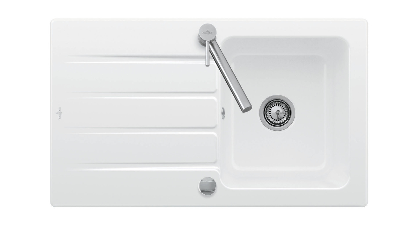Diamètre de perçage pour la manette de vidage : 35 mm. Evier à encastrer Luisiceram avec vidage automatique chromé. Deux perçages présents pour emplacement robinetterie et manette de vidage.