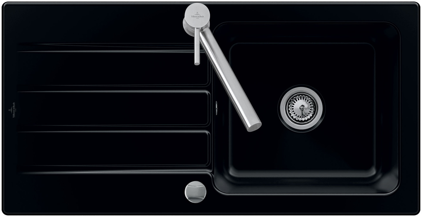 Diamètre de perçage pour la manette de vidage : 35 mm. Evier à encastrer Luisiceram avec vidage automatique chromé. Deux perçages présents pour emplacement robinetterie et manette de vidage.