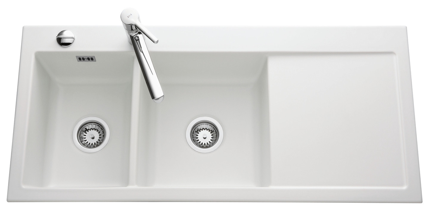 Evier à encastrer Luisina 2 bacs, 1 égouttoir coloris Blanc Brillant