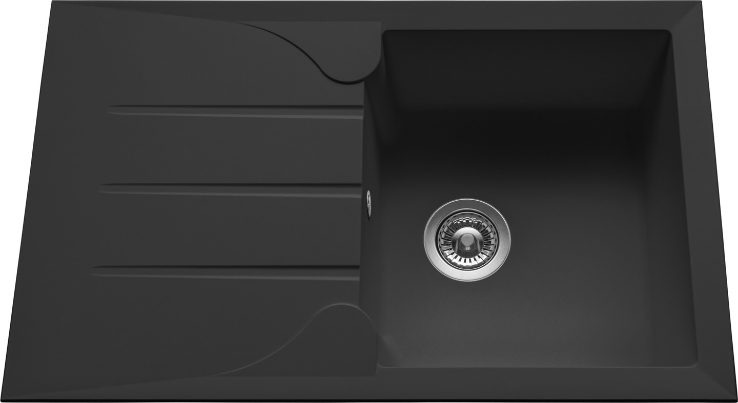 Evier à encastrer Luisina 1 bac, 1 égouttoir coloris Granité Noir