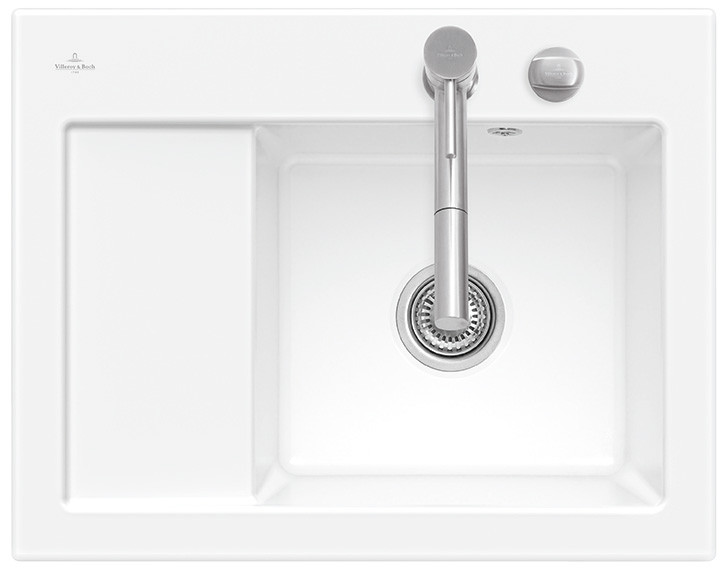 Evier à encastrer Villeroy & Boch 1 bac, 1 égouttoir coloris Blanc