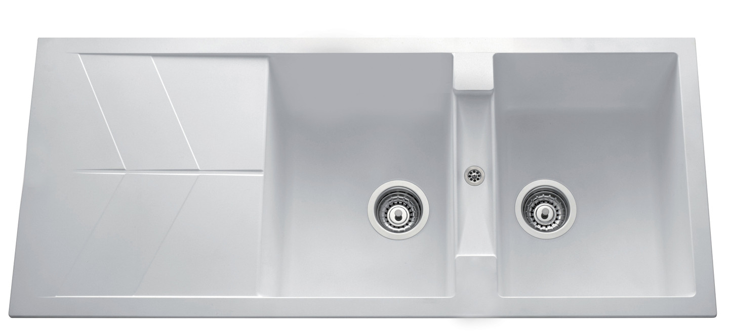 Evier à encastrer Luisina 2 bacs, 1 égouttoir coloris Alpina