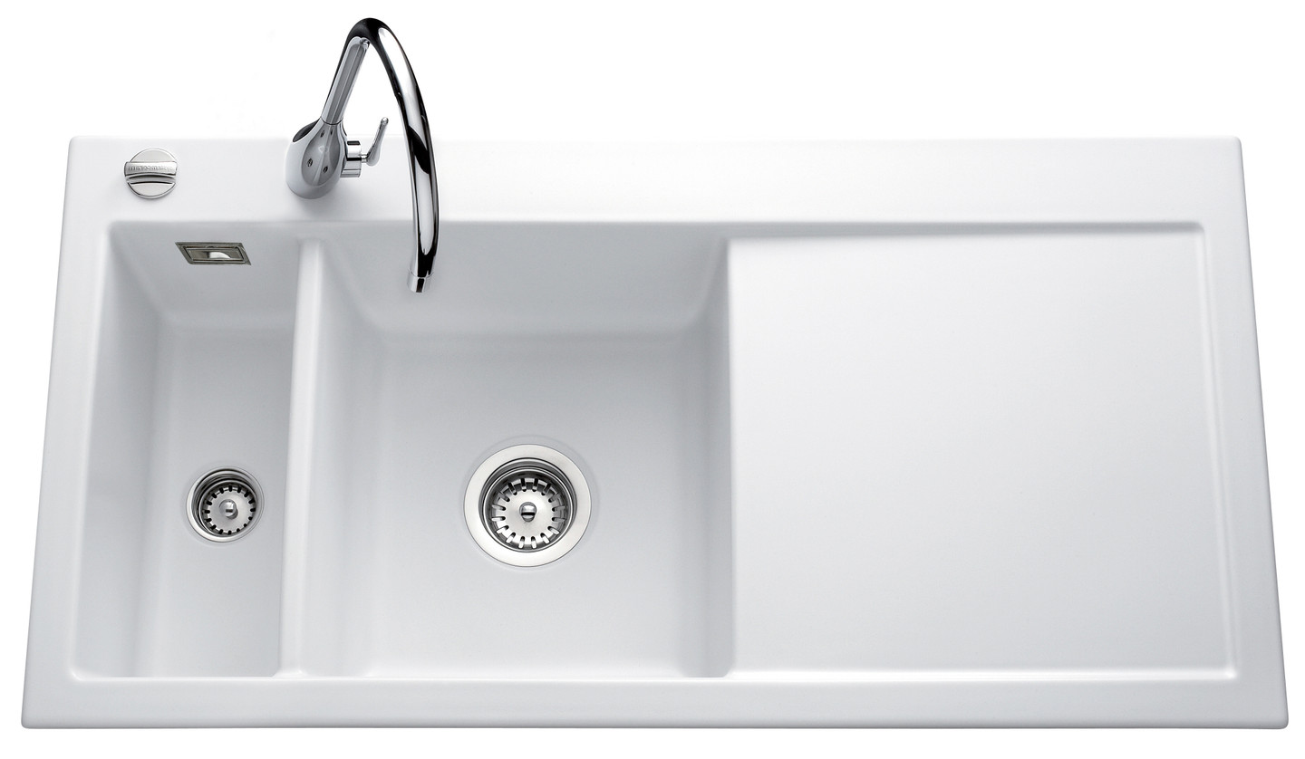 Evier à encastrer Luisina 1 bac, 1 vide-sauce, 1 égouttoir coloris Blanc Brillant