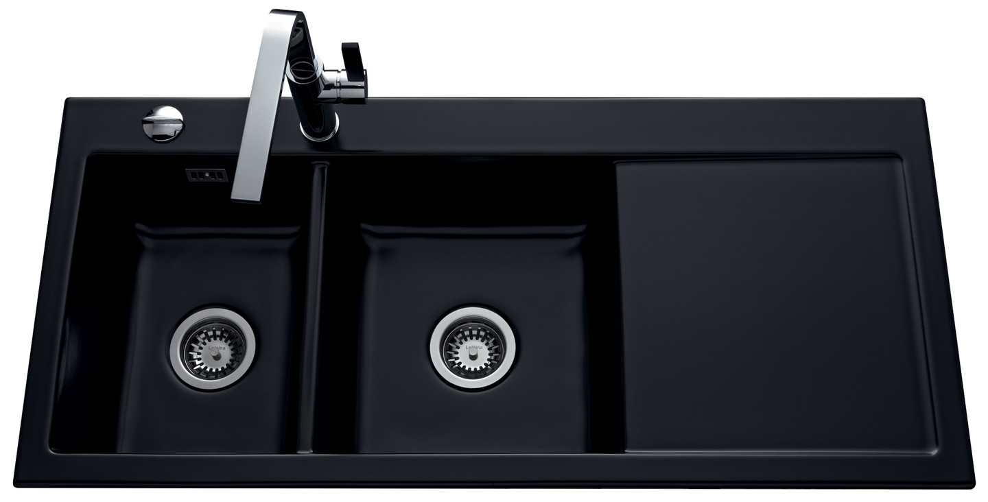 Evier à encastrer Luisina 2 bacs, 1 égouttoir coloris Nigra