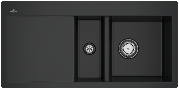 Evier à fleur Villeroy & Boch 1 bac, 1 vide-sauce, 1 égouttoir coloris Pure Black