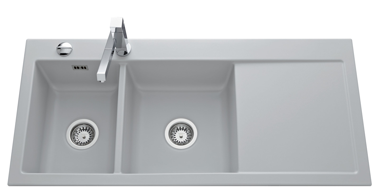 Evier à encastrer Luisina 2 bacs, 1 égouttoir coloris Alu