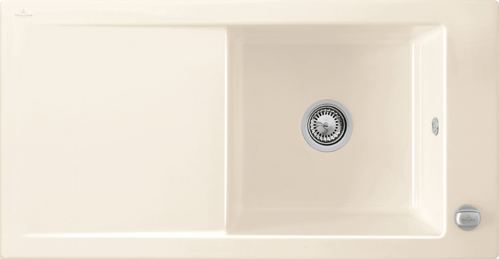 Evier à fleur Villeroy & Boch 1 grand bac, 1 égouttoir coloris Crème