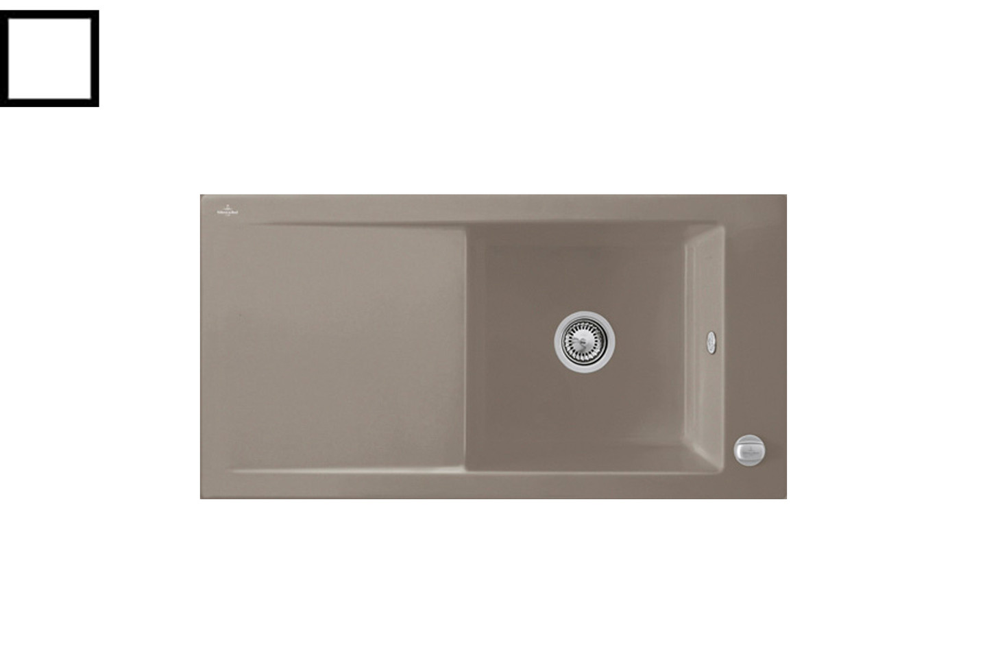 Diamètre de perçage pour la manette de vidage : 35 mm. Evier à fleur Luisiceram avec vidage automatique chromé.