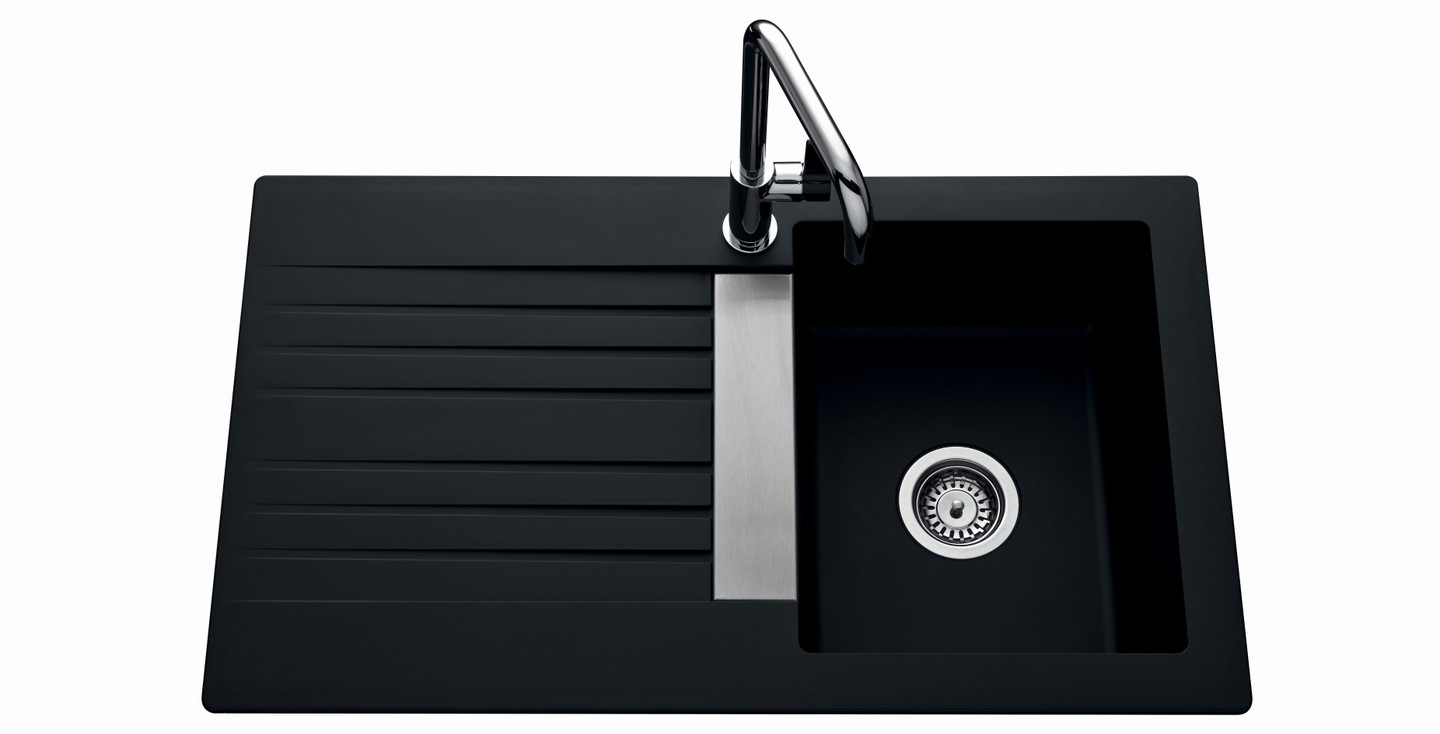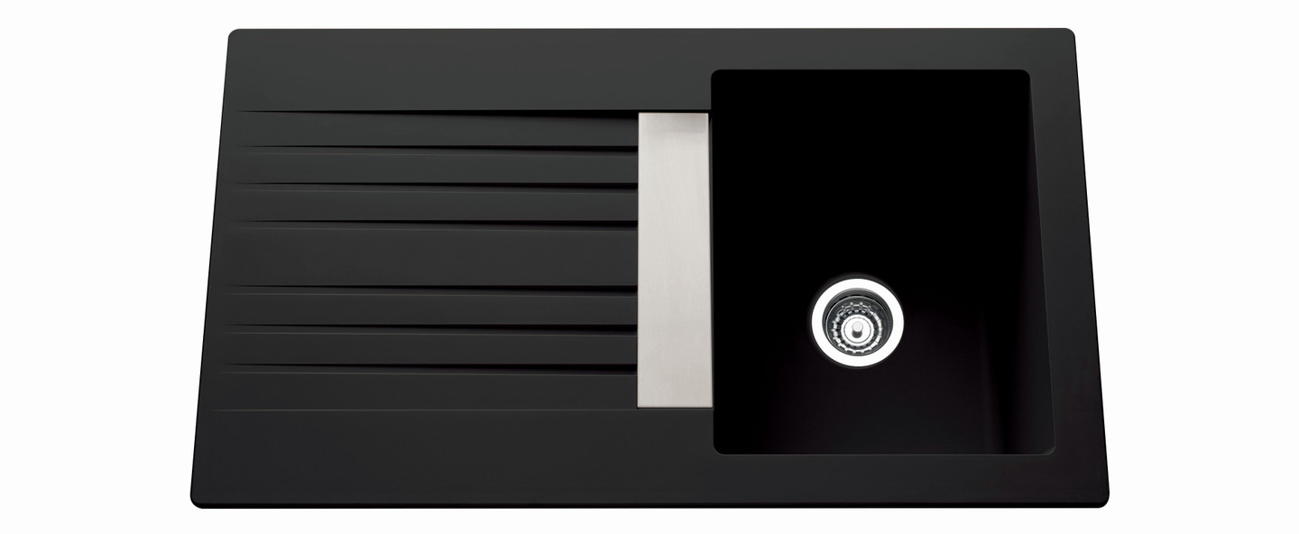 Evier à encastrer Luisina 1 bac, 1 égouttoir coloris Noir