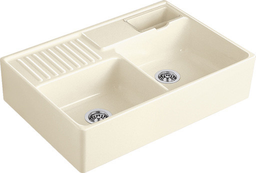 Evier à poser Villeroy & Boch 2 bacs, 1 vide-sauce, 1 égouttoir coloris Crème