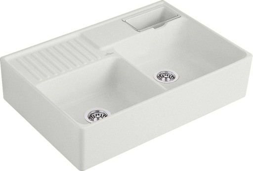 Evier à poser Villeroy & Boch 2 bacs, 1 vide-sauce, 1 égouttoir coloris Steam