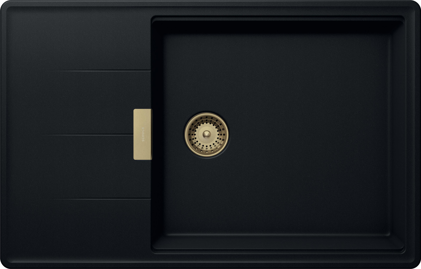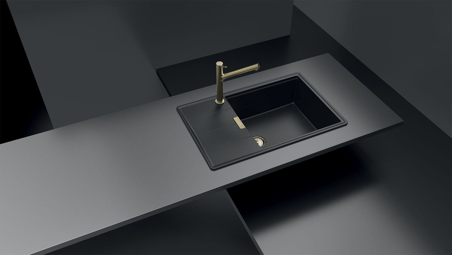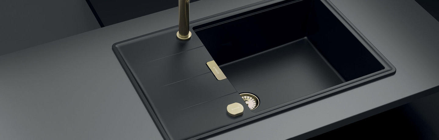 Evier à encastrer Luisidiam avec vidage manuel chromé. En option : bonde 84 mm et trop-plein finition Gun metal AV400078088, finition Cuivre AV400078094, finition Or AV400078018. Installation possible en sous-plan avec le kit de fixation AEFIX630168.