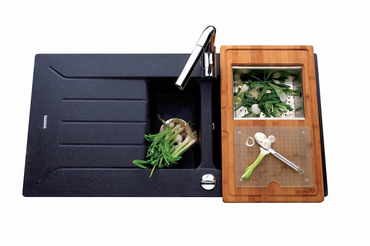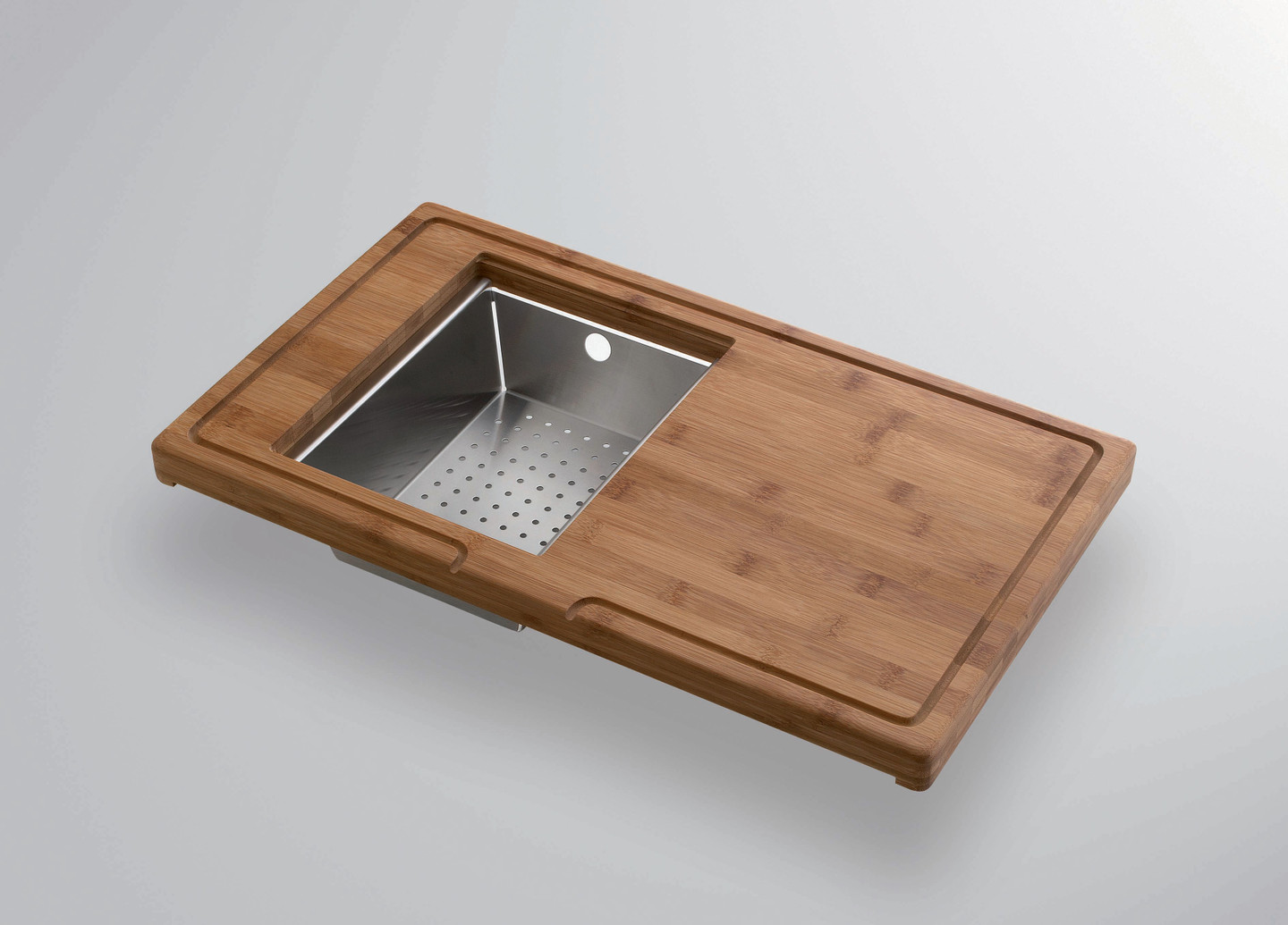 Planche en bambou avec vide sauce en inox et planche en verre additionnelle