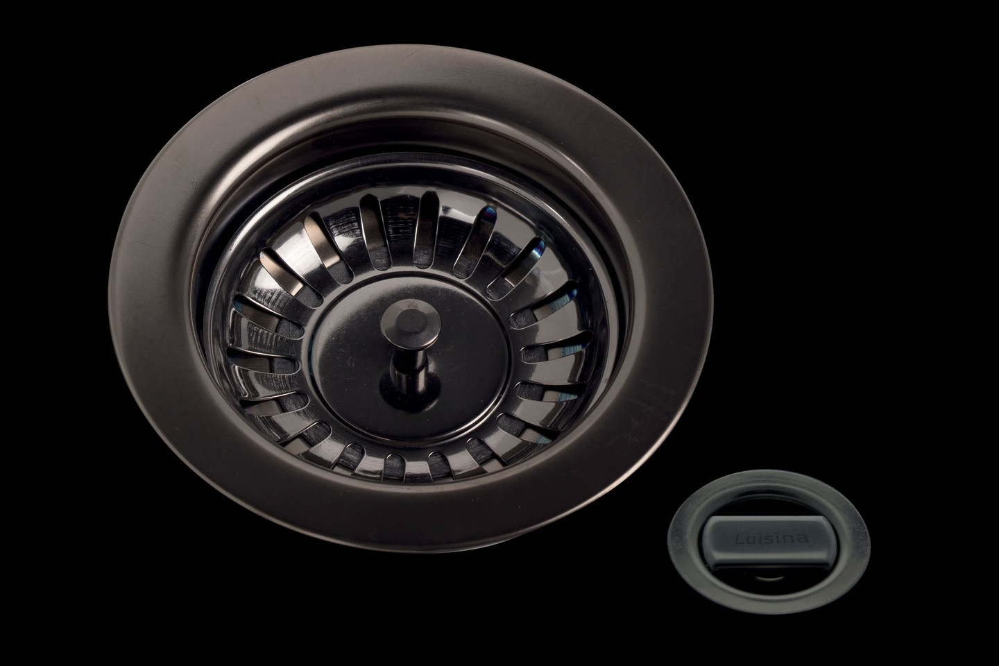 Kit vidage bonde + panier + trop plein en inox revêtement PVD Gun métal brillant