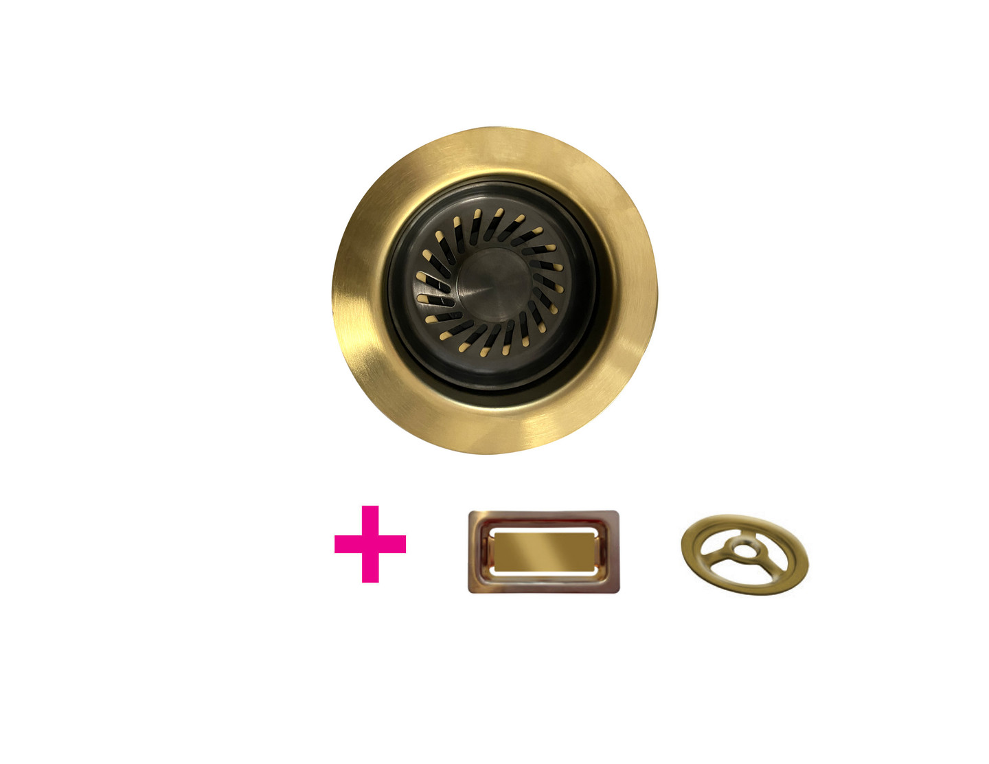 Kit vidage bonde bicolore + trop plein en inox revêtement PVD Or