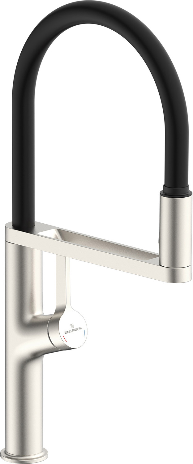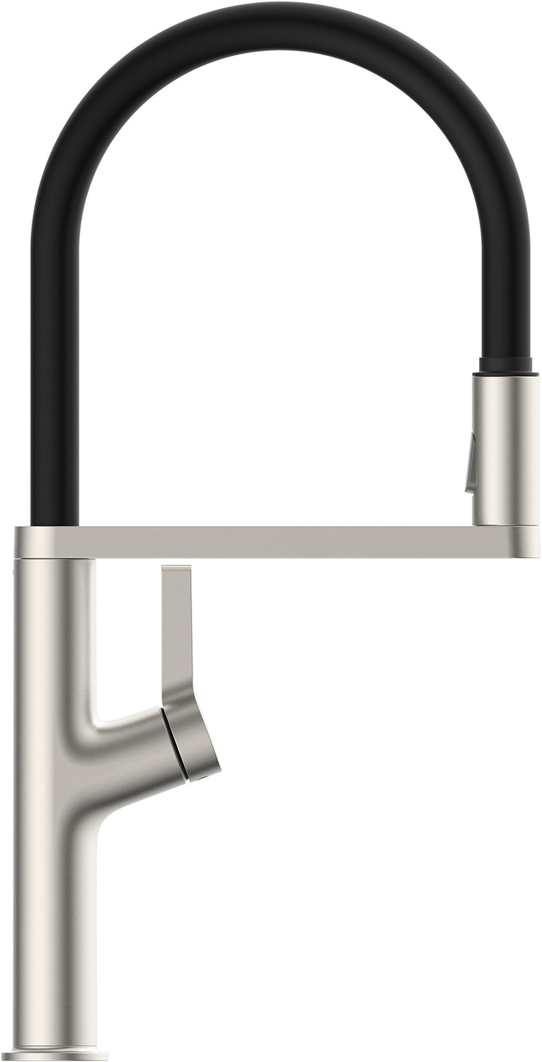 Mitigeur de cuisine Luisina, bec pivotant nickel brossé PVD avec douchette mobile double jet