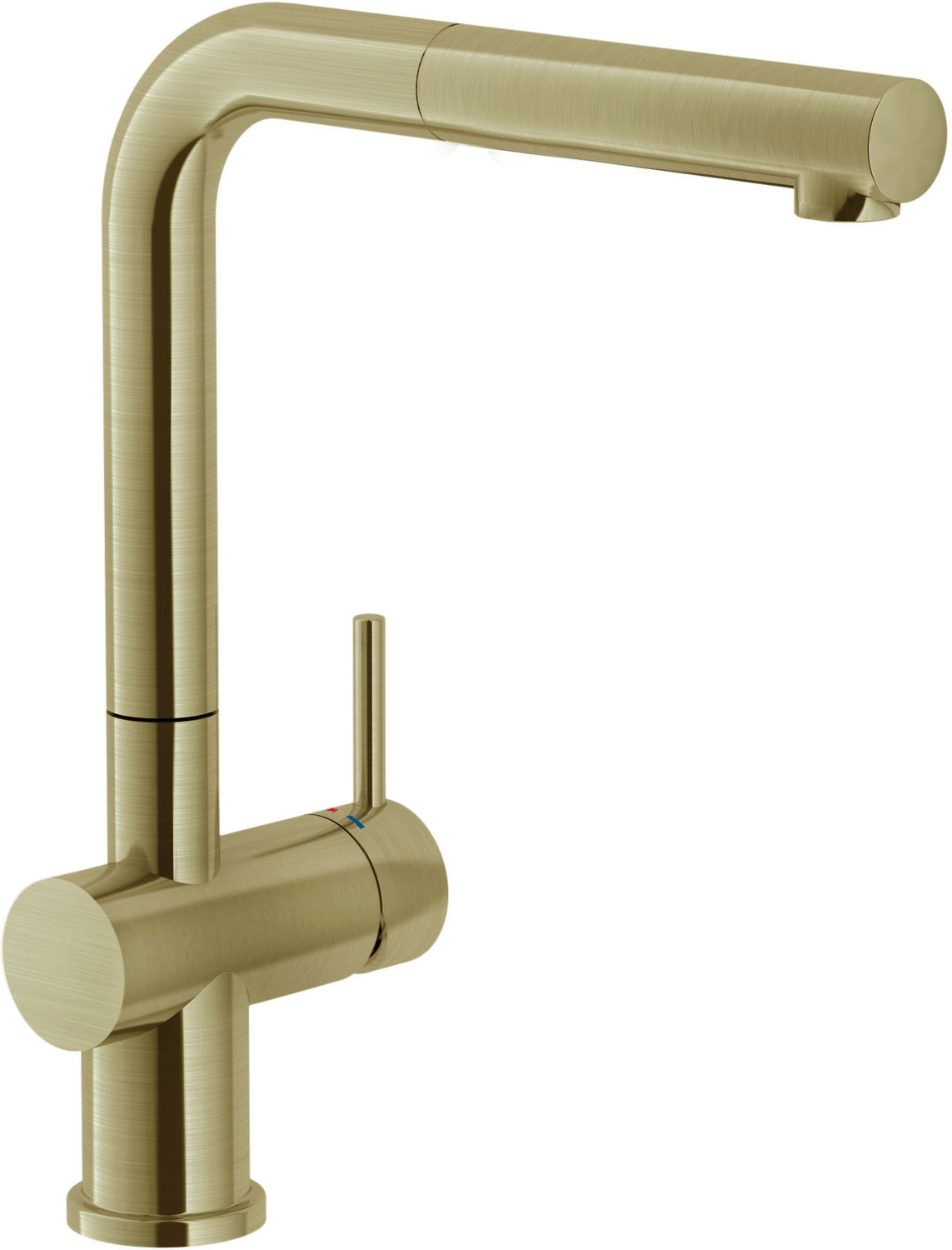 Mitigeur de cuisine Luisina, bec pivotant doré mat avec douchette extractible monojet